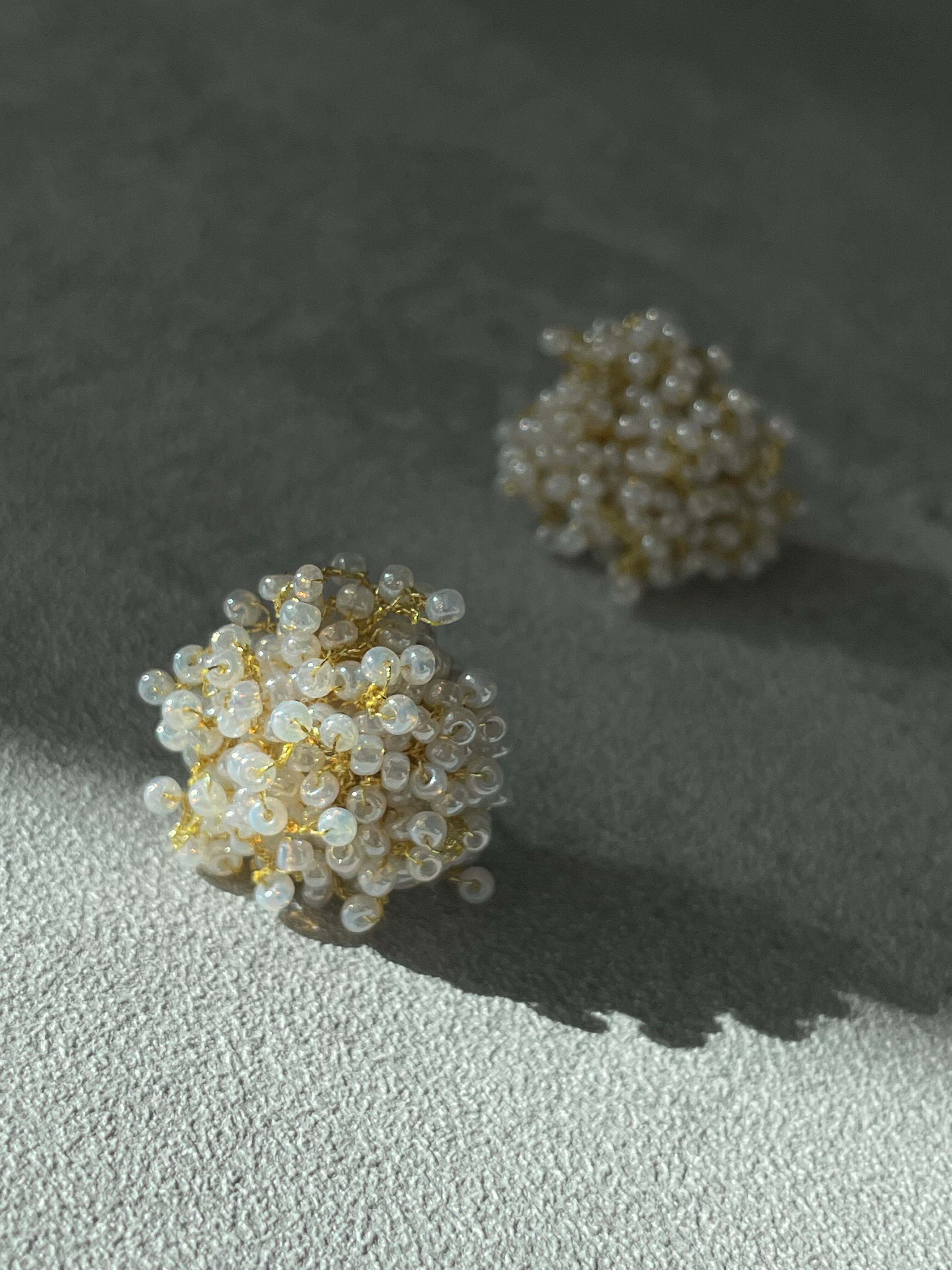 まるで光を閉じ込めたかのように、ふんわりと耳元を彩る耳飾り。