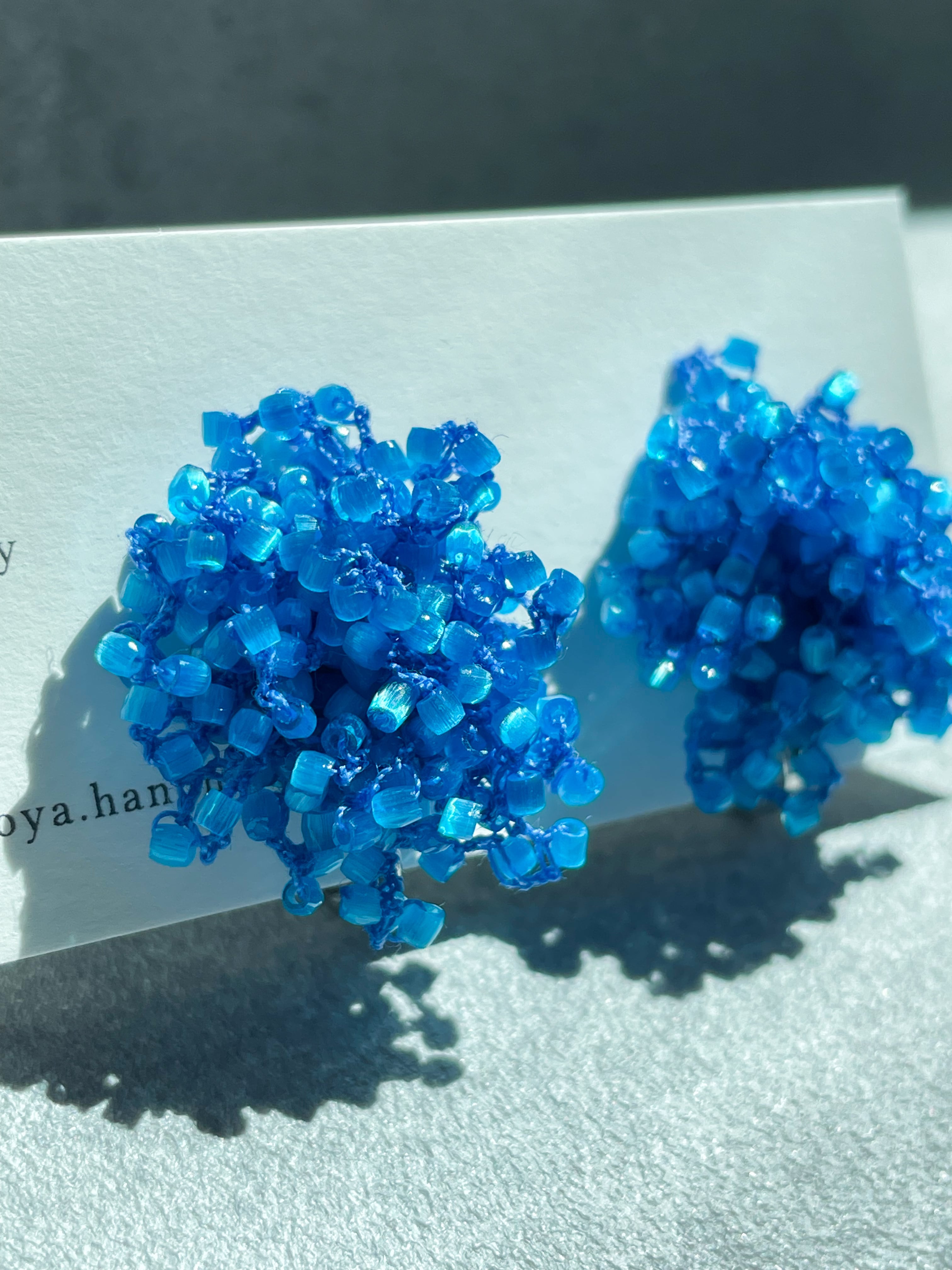 鮮やかなスカイブルーカラーのビーズが、光に反射してキラキラと煌めき、まるで澄んだ空を閉じ込めたかのような輝きを放ちます。
